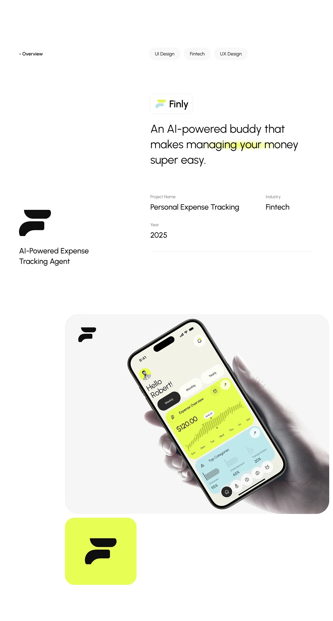 Finly is an AI-driven finance app that helps users track expenses, set financial goals, and get personalized savings tips. We designed a minimal, intuitive interface that simplifies complex data into digestible visual insights — making money management feel clear, actionable, and human.