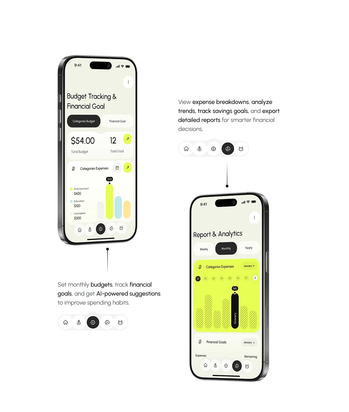 • Goals & Budgets – Set targets, get AI-based nudges